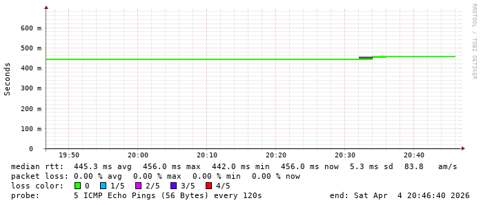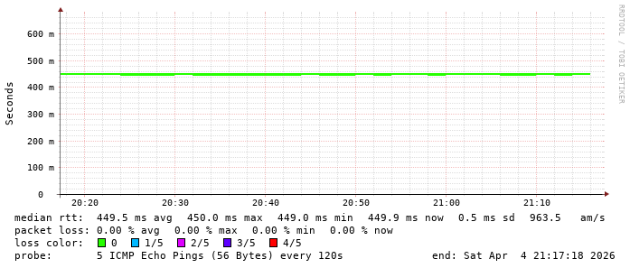 5. Median RTT 0.450000 seconds